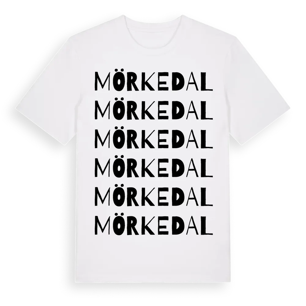 Mörkedal ordlek t-shirt är inspirerad av Mörkedal i Östergötlands län, Sverige. Tröjan är designad för dig som har en speciell koppling till platsen – oavsett om du bor här, har rötterna här eller bara älskar Mörkedal.