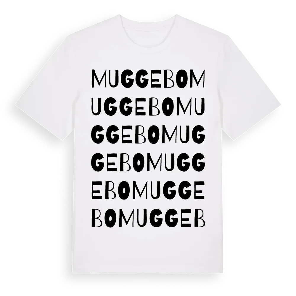 Muggebo ordlek t-shirt är inspirerad av Muggebo i Östergötlands län, Sverige. Tröjan är designad för dig som har en speciell koppling till platsen – oavsett om du bor här, har rötterna här eller bara älskar Muggebo.