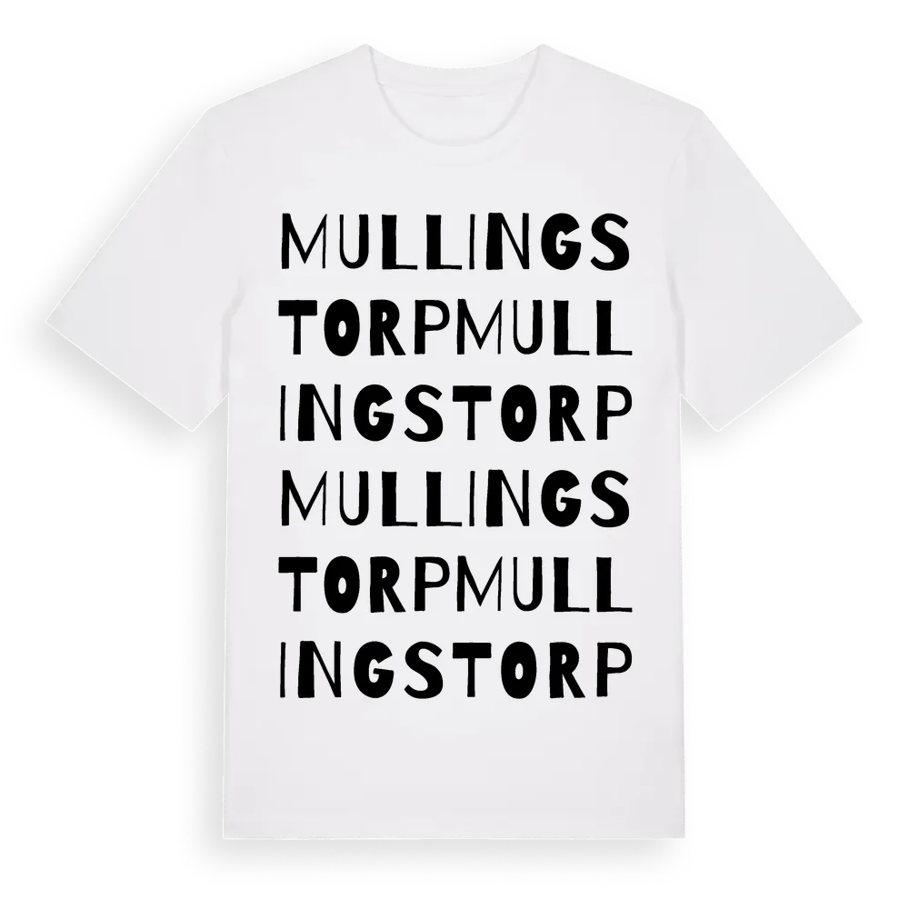 Mullingstorp ordlek t-shirt är inspirerad av byn Mullingstorp i Östergötlands län, Sverige. Tröjan är designad för dig som har en speciell koppling till platsen – oavsett om du bor här, har rötterna här eller bara älskar Mullingstorp.