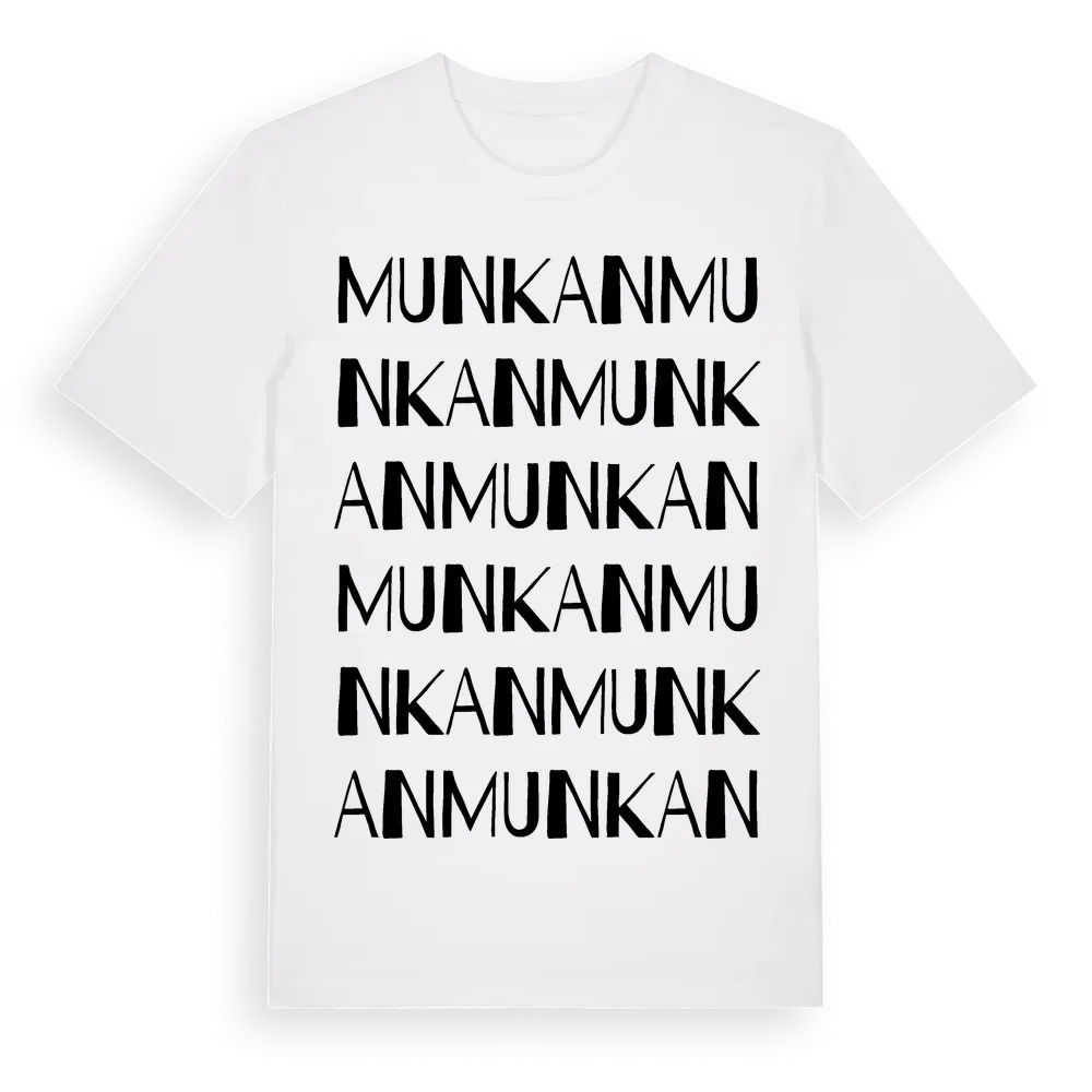 Munkan ordlek t-shirt är inspirerad av Munkan i Östergötlands län, Sverige. Tröjan är designad för dig som har en speciell koppling till platsen – oavsett om du bor här, har rötterna här eller bara älskar Munkan.
