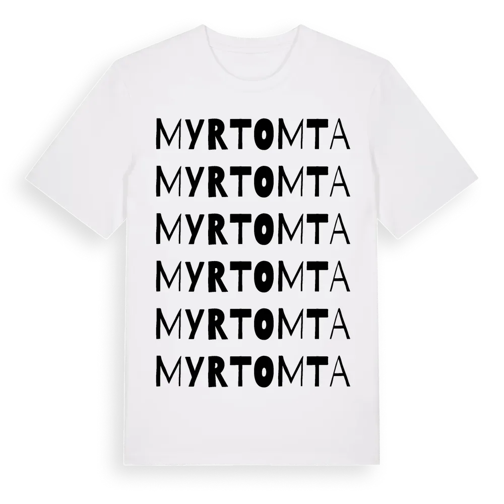Myrtomta ordlek t-shirt är inspirerad av Myrtomta i Östergötlands län, Sverige. Tröjan är designad för dig som har en speciell koppling till platsen – oavsett om du bor här, har rötterna här eller bara älskar Myrtomta.