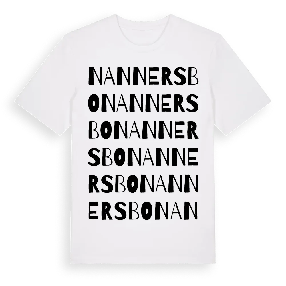 Nannersbo ordlek t-shirt är inspirerad av byn Nannersbo i Östergötlands län, Sverige. Tröjan är designad för dig som har en speciell koppling till platsen – oavsett om du bor här, har rötterna här eller bara älskar Nannersbo.