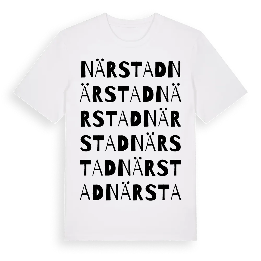 Närstad ordlek t-shirt är inspirerad av byn Närstad i Östergötlands län, Sverige. Tröjan är designad för dig som har en speciell koppling till platsen – oavsett om du bor här, har rötterna här eller bara älskar Närstad.