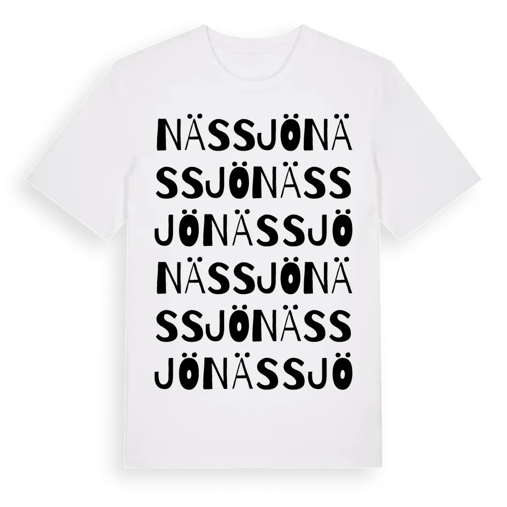 Nässjö ordlek t-shirt är inspirerad av Nässjö i Östergötlands län, Sverige. Tröjan är designad för dig som har en speciell koppling till platsen – oavsett om du bor här, har rötterna här eller bara älskar Nässjö.
