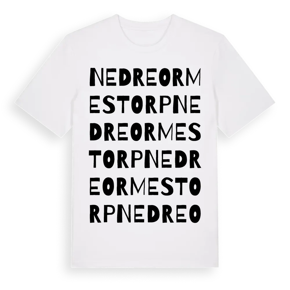 Nedre Ormestorp ordlek t-shirt är inspirerad av Nedre Ormestorp i Östergötlands län, Sverige. Tröjan är designad för dig som har en speciell koppling till platsen – oavsett om du bor här, har rötterna här eller bara älskar Nedre Ormestorp.