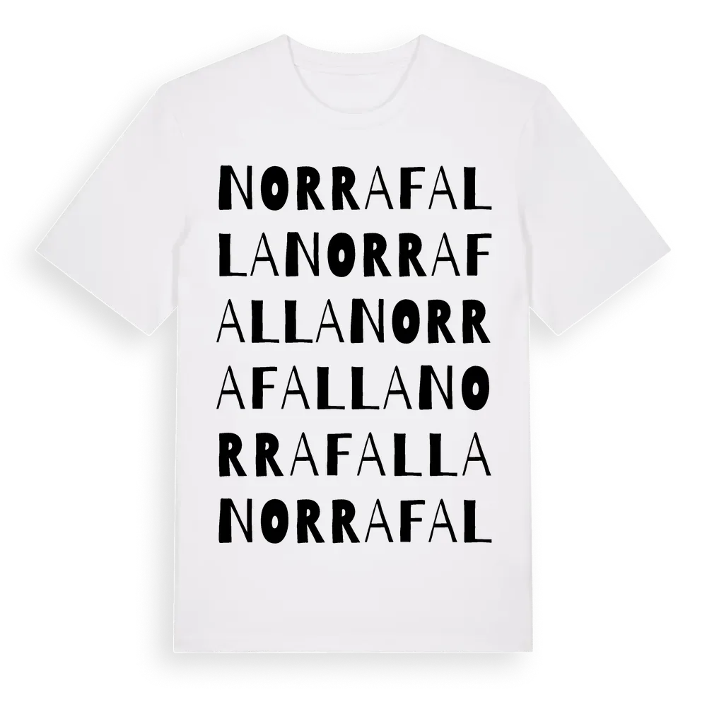 Norra Falla ordlek t-shirt är inspirerad av byn Norra Falla i Östergötlands län, Sverige. Tröjan är designad för dig som har en speciell koppling till platsen – oavsett om du bor här, har rötterna här eller bara älskar Norra Falla.
