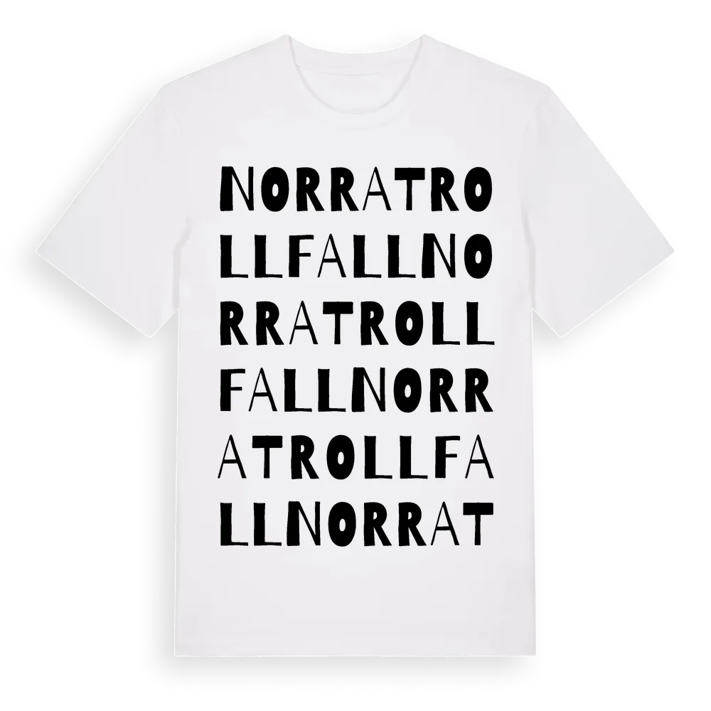 Norra Trollfall ordlek t-shirt är inspirerad av Norra Trollfall i Östergötlands län, Sverige. Tröjan är designad för dig som har en speciell koppling till platsen – oavsett om du bor här, har rötterna här eller bara älskar Norra Trollfall.