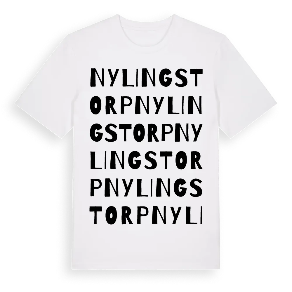 Nylingstorp ordlek t-shirt är inspirerad av byn Nylingstorp i Östergötlands län, Sverige. Tröjan är designad för dig som har en speciell koppling till platsen – oavsett om du bor här, har rötterna här eller bara älskar Nylingstorp.