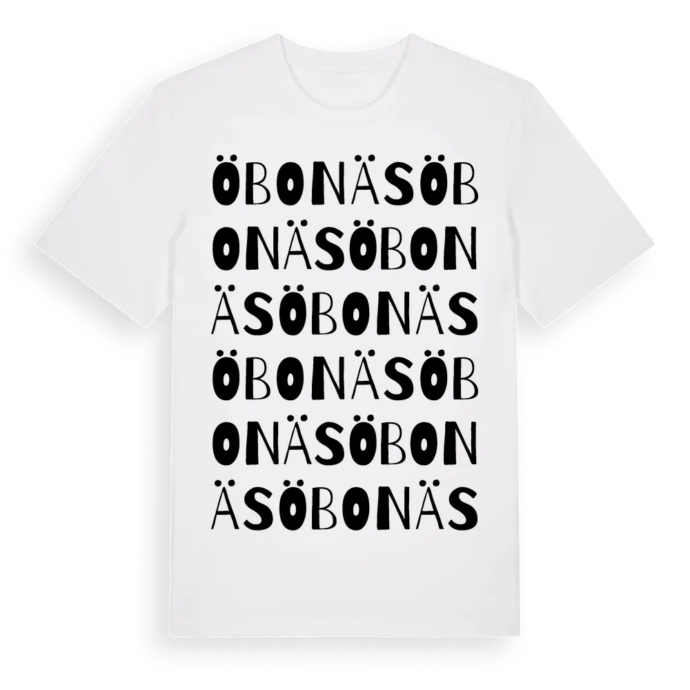 Öbonäs ordlek t-shirt är inspirerad av byn Öbonäs i Östergötlands län, Sverige. Tröjan är designad för dig som har en speciell koppling till platsen – oavsett om du bor här, har rötterna här eller bara älskar Öbonäs.