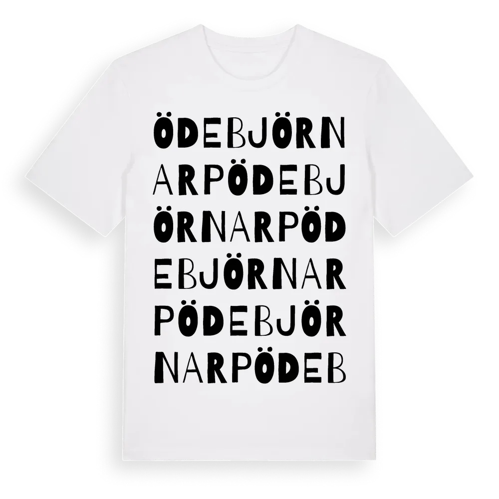 Ödebjörnarp ordlek t-shirt är inspirerad av byn Ödebjörnarp i Östergötlands län, Sverige. Tröjan är designad för dig som har en speciell koppling till platsen – oavsett om du bor här, har rötterna här eller bara älskar Ödebjörnarp.