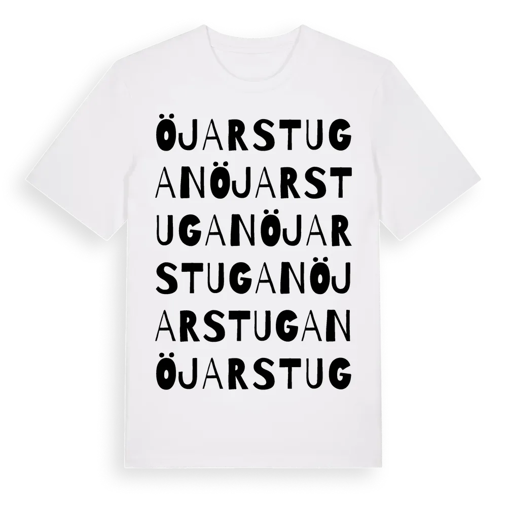 Öjarstugan ordlek t-shirt är inspirerad av Öjarstugan i Östergötlands län, Sverige. Tröjan är designad för dig som har en speciell koppling till platsen – oavsett om du bor här, har rötterna här eller bara älskar Öjarstugan.