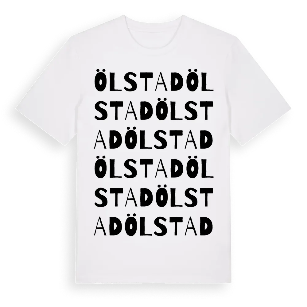 Ölstad ordlek t-shirt är inspirerad av byn Ölstad i Östergötlands län, Sverige. Tröjan är designad för dig som har en speciell koppling till platsen – oavsett om du bor här, har rötterna här eller bara älskar Ölstad.