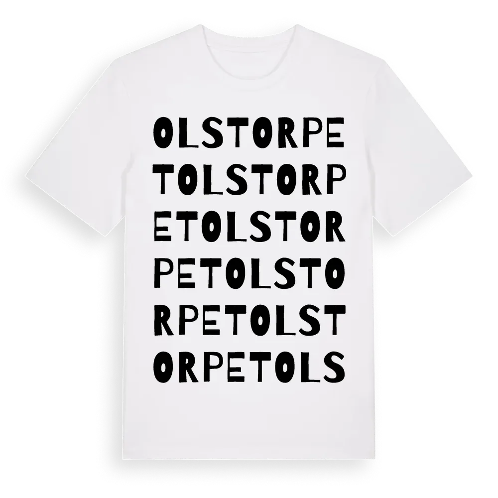 Olstorpet ordlek t-shirt är inspirerad av Olstorpet i Östergötlands län, Sverige. Tröjan är designad för dig som har en speciell koppling till platsen – oavsett om du bor här, har rötterna här eller bara älskar Olstorpet.