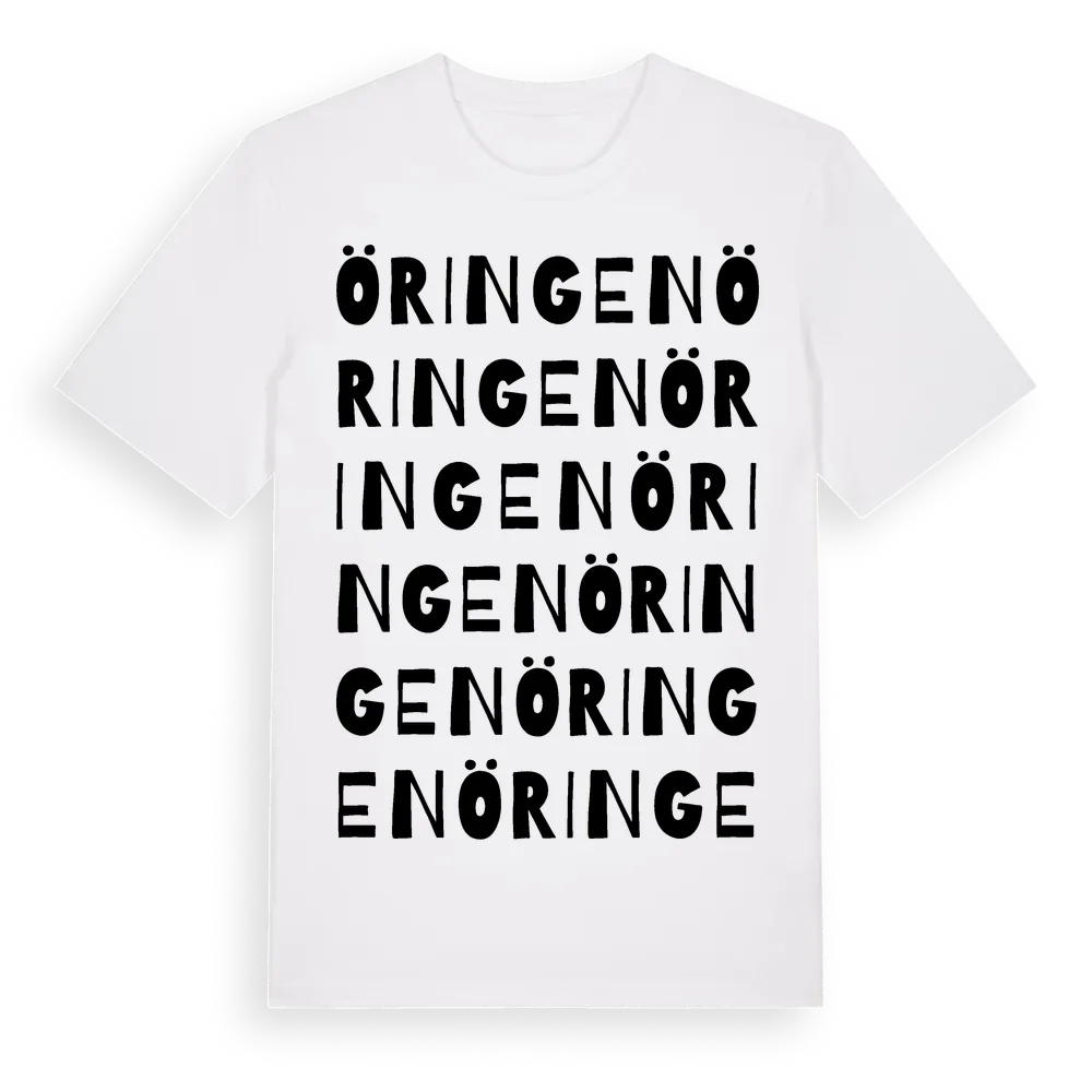 Öringen ordlek t-shirt är inspirerad av Öringen i Östergötlands län, Sverige. Tröjan är designad för dig som har en speciell koppling till platsen – oavsett om du bor här, har rötterna här eller bara älskar Öringen.