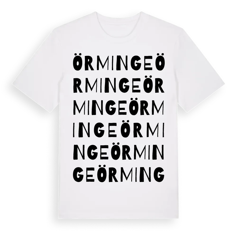 Örminge ordlek t-shirt är inspirerad av byn Örminge i Östergötlands län, Sverige. Tröjan är designad för dig som har en speciell koppling till platsen – oavsett om du bor här, har rötterna här eller bara älskar Örminge.