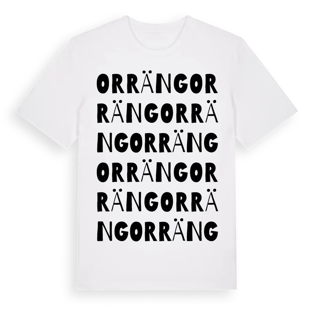 Orräng ordlek t-shirt är inspirerad av Orräng i Östergötlands län, Sverige. Tröjan är designad för dig som har en speciell koppling till platsen – oavsett om du bor här, har rötterna här eller bara älskar Orräng.