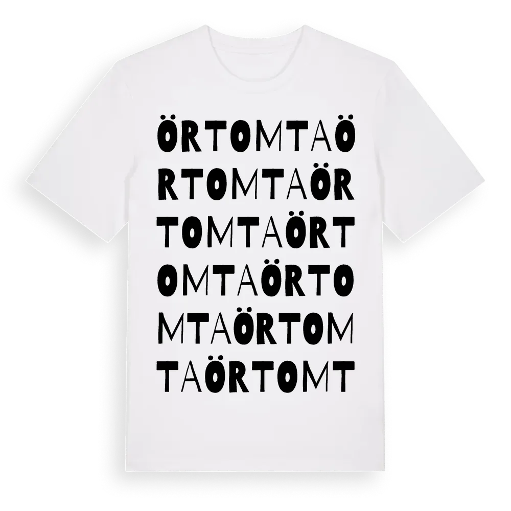 Örtomta ordlek t-shirt är inspirerad av byn Örtomta i Östergötlands län, Sverige. Tröjan är designad för dig som har en speciell koppling till platsen – oavsett om du bor här, har rötterna här eller bara älskar Örtomta.