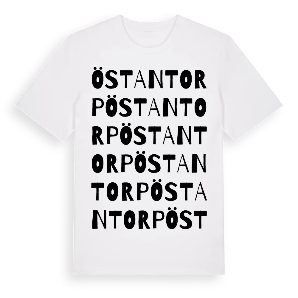 Östantorp ordlek t-shirt är inspirerad av Östantorp i Östergötlands län, Sverige. Tröjan är designad för dig som har en speciell koppling till platsen – oavsett om du bor här, har rötterna här eller bara älskar Östantorp.
