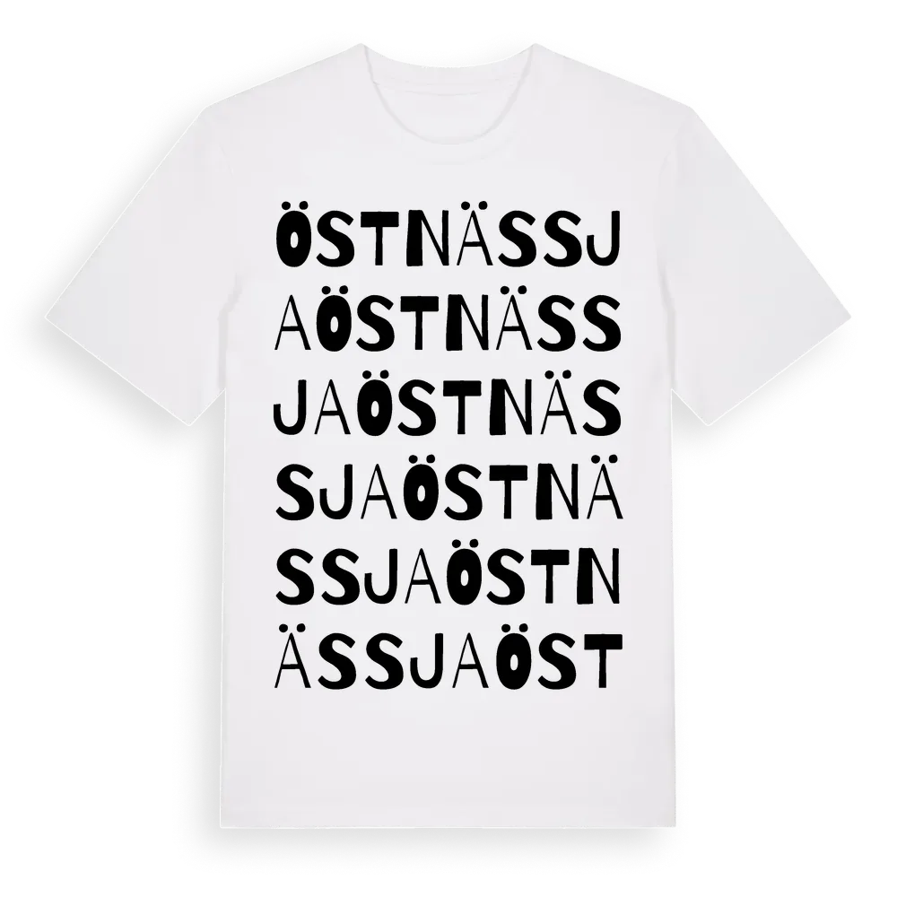 Östnässja ordlek t-shirt är inspirerad av byn Östnässja i Östergötlands län, Sverige. Tröjan är designad för dig som har en speciell koppling till platsen – oavsett om du bor här, har rötterna här eller bara älskar Östnässja.