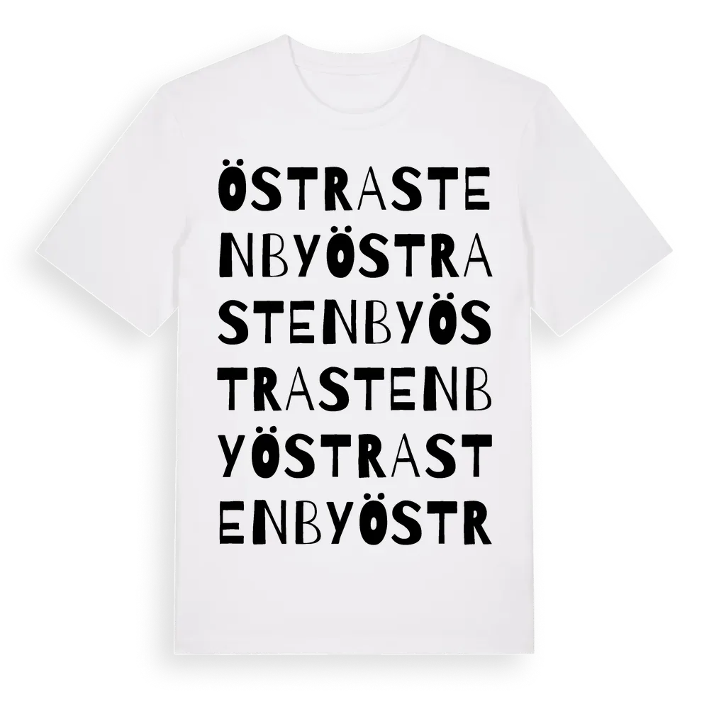 Östra Stenby ordlek t-shirt är inspirerad av byn Östra Stenby i Östergötlands län, Sverige. Tröjan är designad för dig som har en speciell koppling till platsen – oavsett om du bor här, har rötterna här eller bara älskar Östra Stenby.