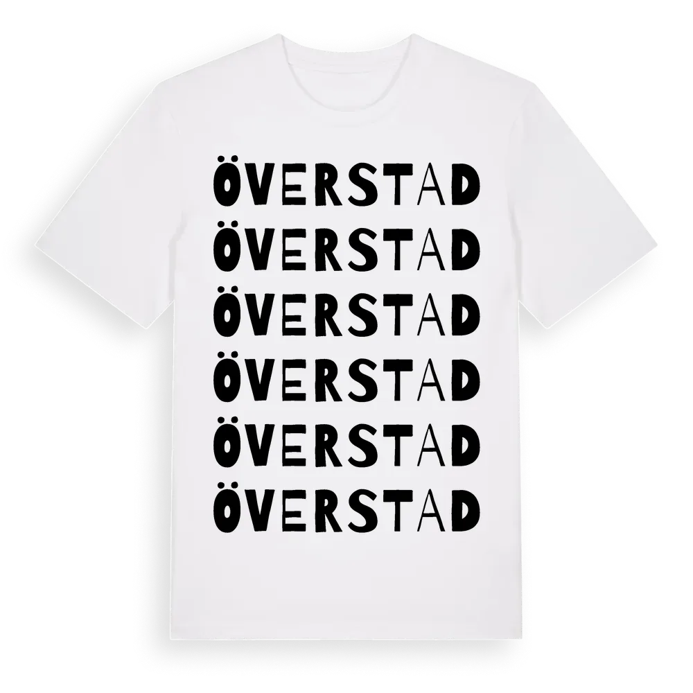 Överstad ordlek t-shirt är inspirerad av byn Överstad i Östergötlands län, Sverige. Tröjan är designad för dig som har en speciell koppling till platsen – oavsett om du bor här, har rötterna här eller bara älskar Överstad.