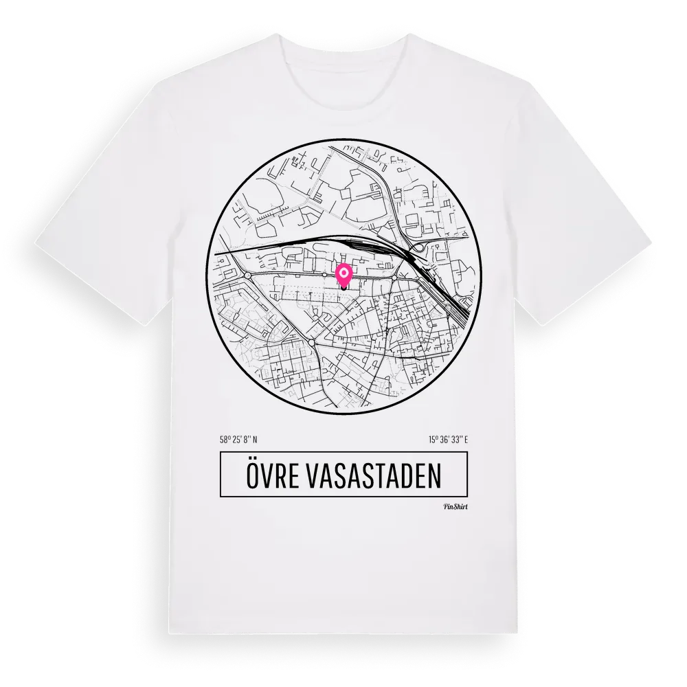 Övre Vasastaden t-shirt är inspirerad av stadsdelen Övre Vasastaden i Östergötlands län, Sverige. Tröjan är designad för dig som har en speciell koppling till platsen – oavsett om du bor här, har rötterna här eller bara älskar Övre Vasastaden.