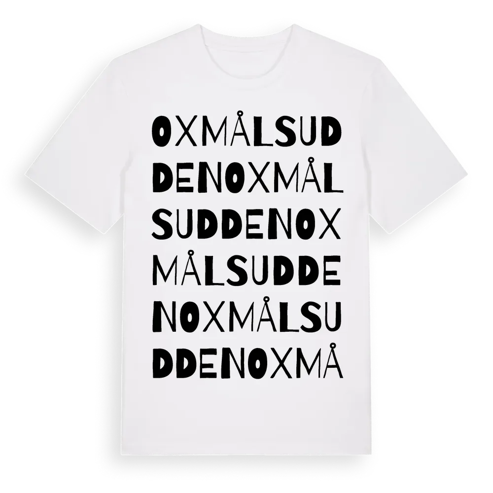 Oxmålsudden ordlek t-shirt är inspirerad av Oxmålsudden i Östergötlands län, Sverige. Tröjan är designad för dig som har en speciell koppling till platsen – oavsett om du bor här, har rötterna här eller bara älskar Oxmålsudden.