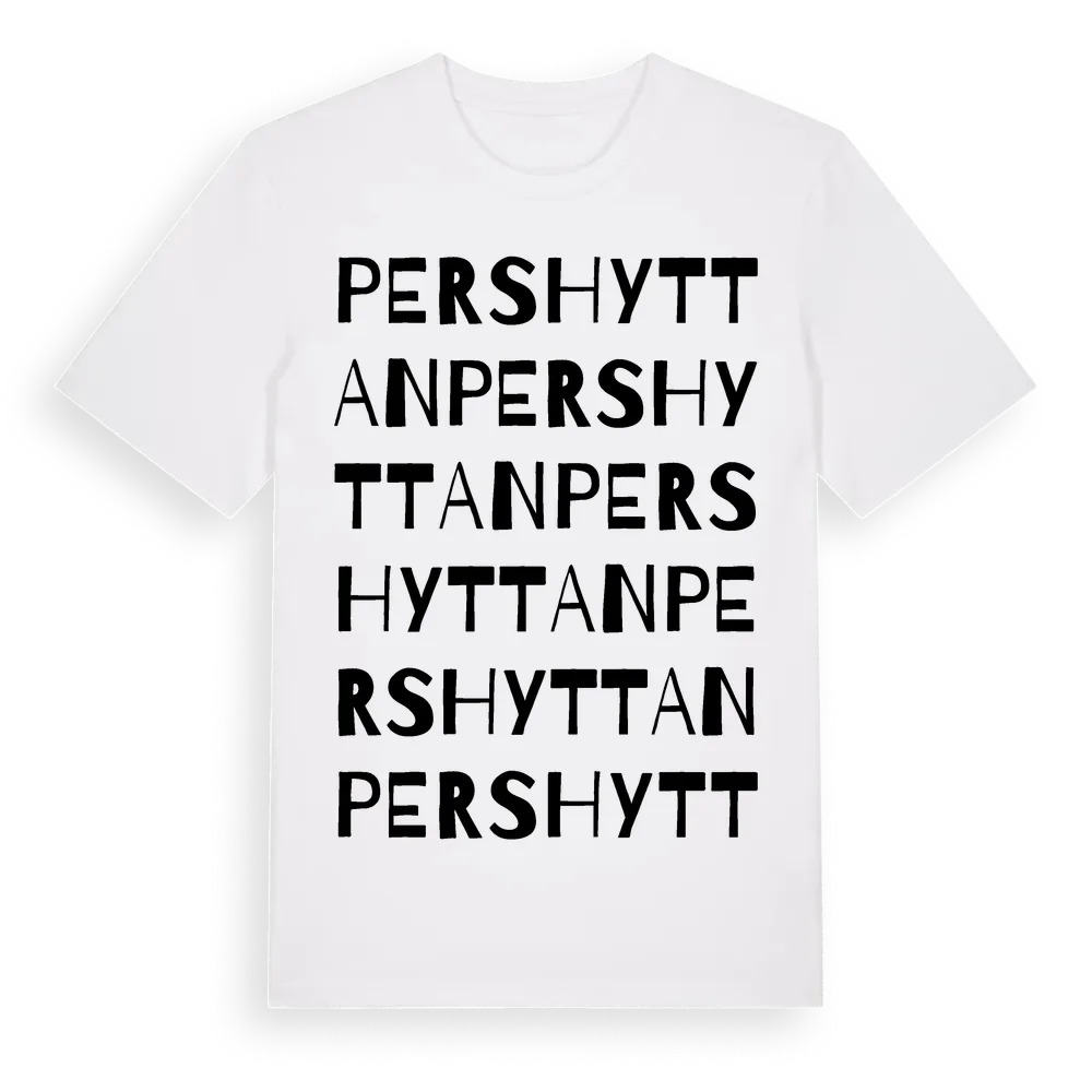Pershyttan ordlek t-shirt är inspirerad av Pershyttan i Östergötlands län, Sverige. Tröjan är designad för dig som har en speciell koppling till platsen – oavsett om du bor här, har rötterna här eller bara älskar Pershyttan.