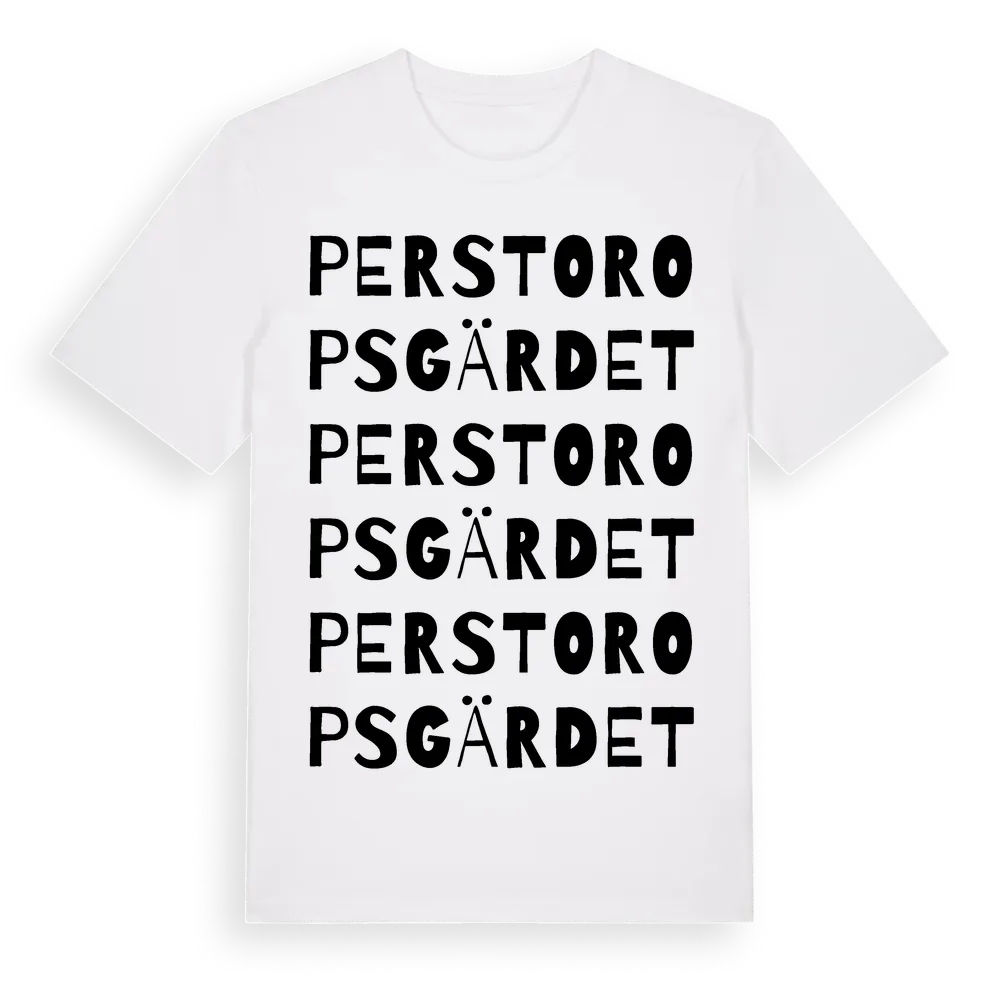 Perstoropsgärdet ordlek t-shirt är inspirerad av Perstoropsgärdet i Östergötlands län, Sverige. Tröjan är designad för dig som har en speciell koppling till platsen – oavsett om du bor här, har rötterna här eller bara älskar Perstoropsgärdet.