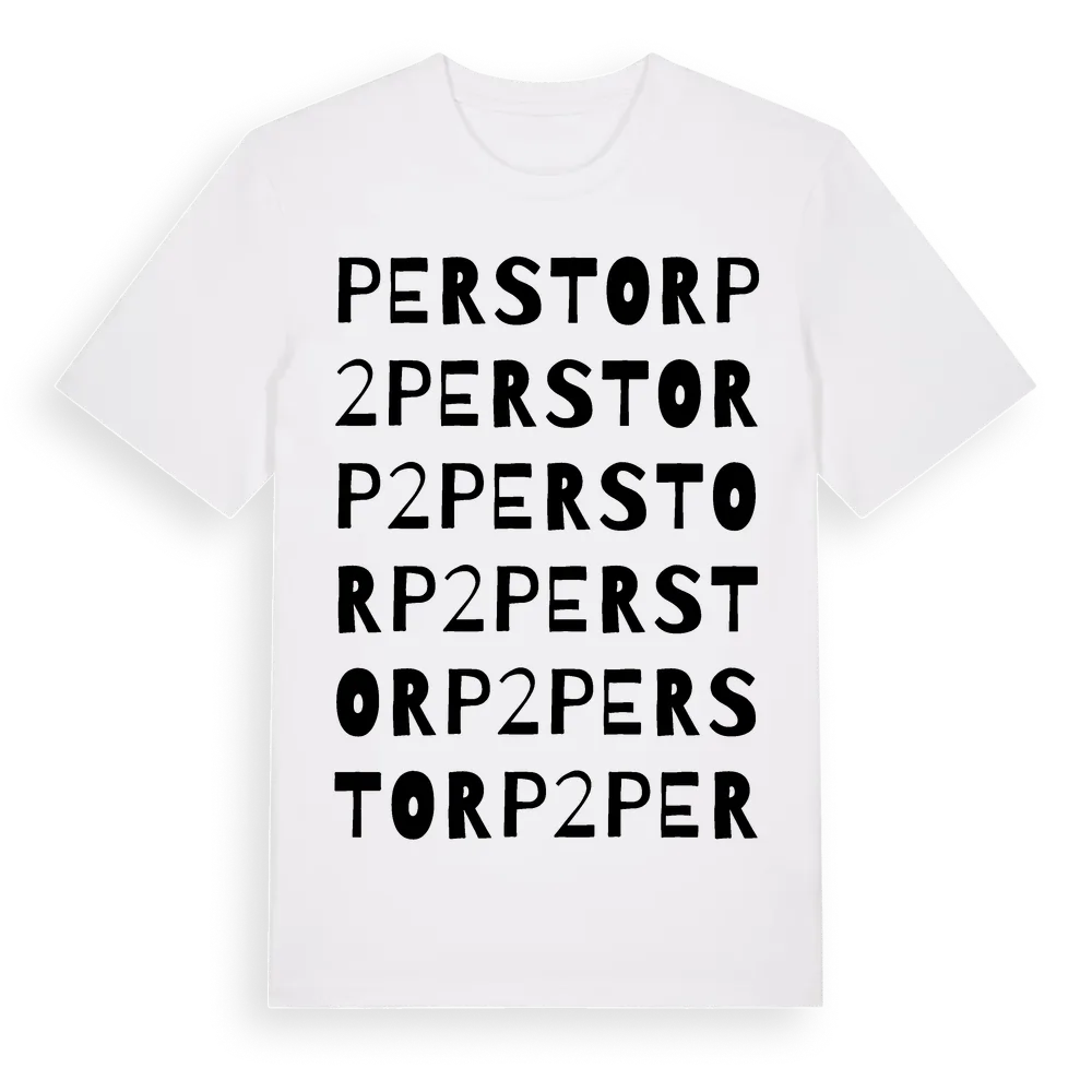 En ordlek byggd på Perstorp 2s namn. Subtilt och klurig – ett motiv som bara de som verkligen känner platsen fullt ut förstår. Premium bomull, unisex – från Perstorp 2 i Östergötlands län.