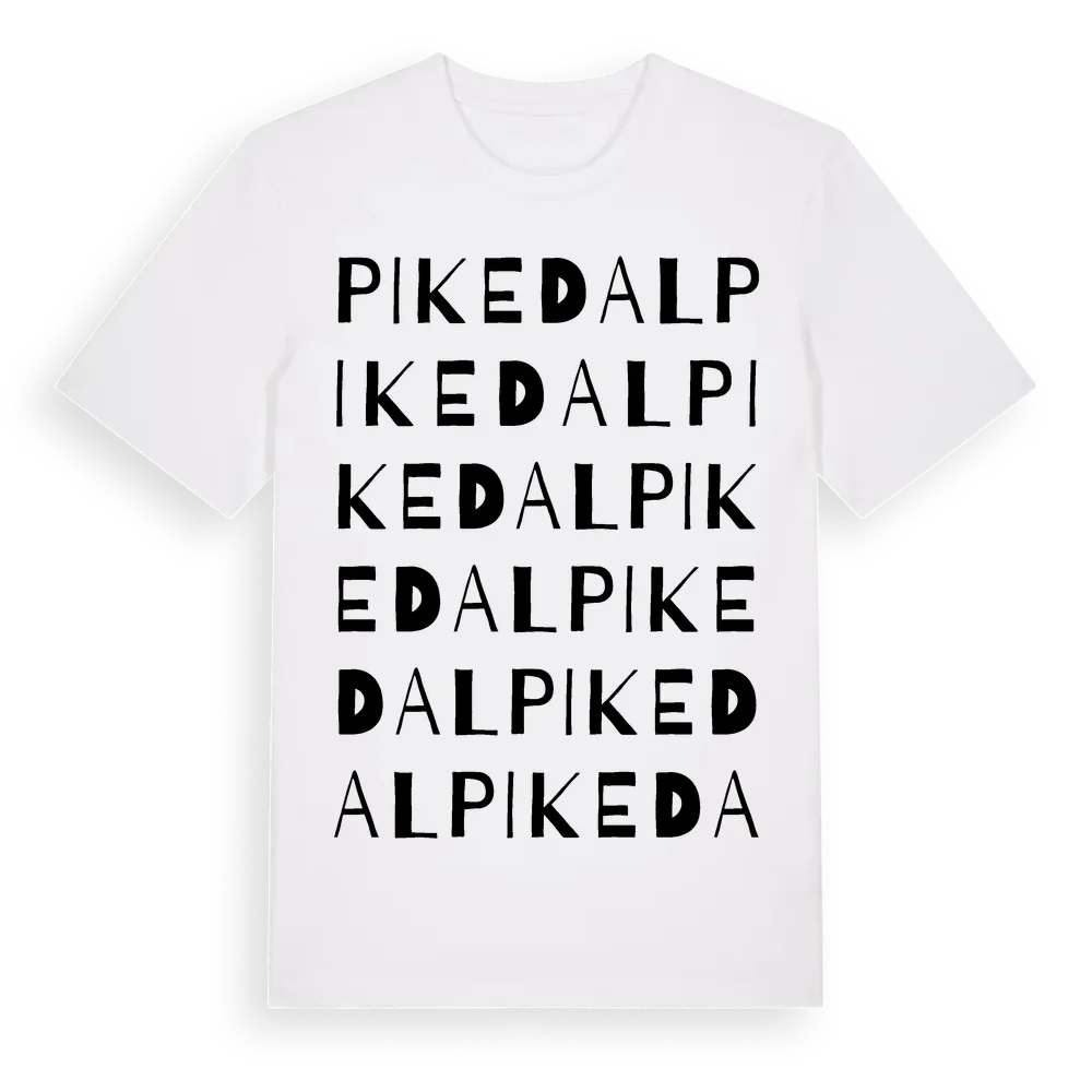 Pikedal ordlek t-shirt är inspirerad av byn Pikedal i Östergötlands län, Sverige. Tröjan är designad för dig som har en speciell koppling till platsen – oavsett om du bor här, har rötterna här eller bara älskar Pikedal.