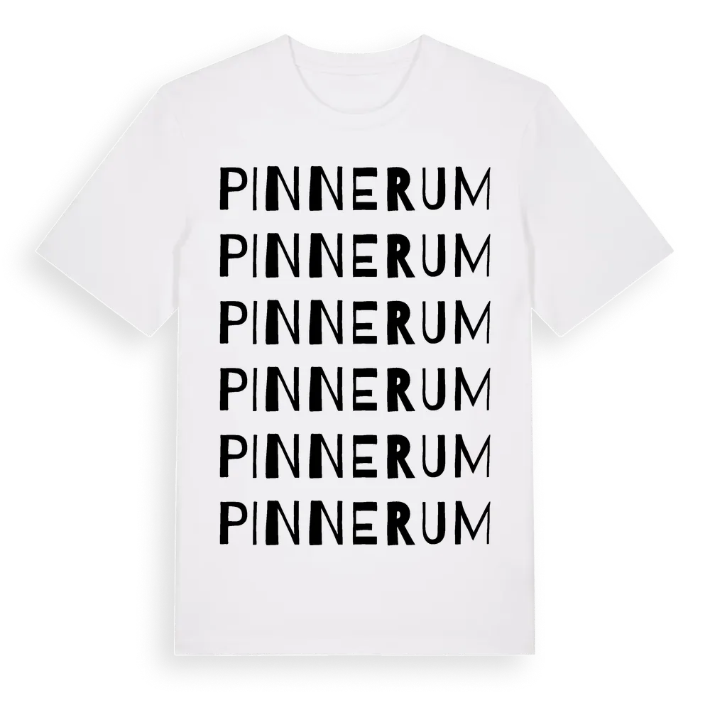 Pinnerum ordlek t-shirt är inspirerad av Pinnerum i Östergötlands län, Sverige. Tröjan är designad för dig som har en speciell koppling till platsen – oavsett om du bor här, har rötterna här eller bara älskar Pinnerum.