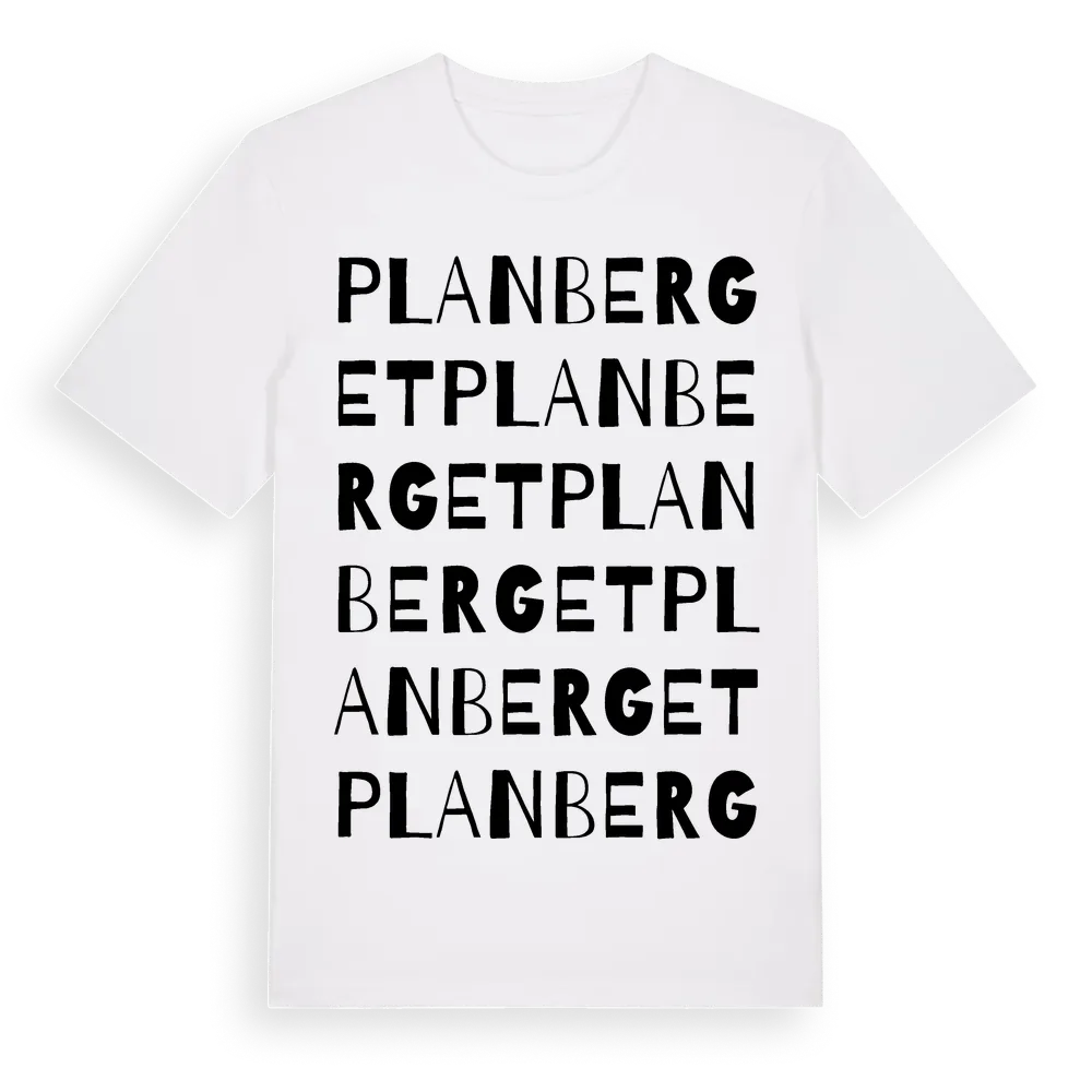Planberget ordlek t-shirt är inspirerad av Planberget i Östergötlands län, Sverige. Tröjan är designad för dig som har en speciell koppling till platsen – oavsett om du bor här, har rötterna här eller bara älskar Planberget.