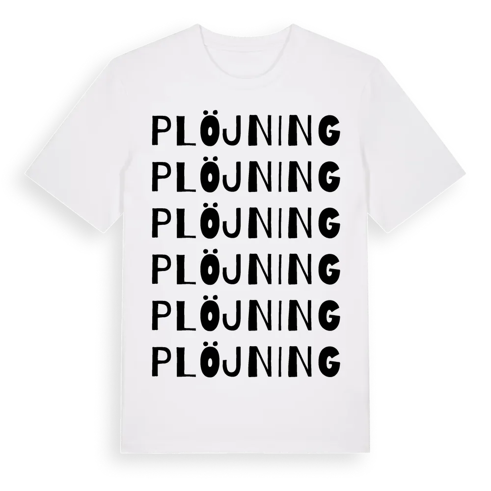 Plöjning ordlek t-shirt är inspirerad av Plöjning i Östergötlands län, Sverige. Tröjan är designad för dig som har en speciell koppling till platsen – oavsett om du bor här, har rötterna här eller bara älskar Plöjning.