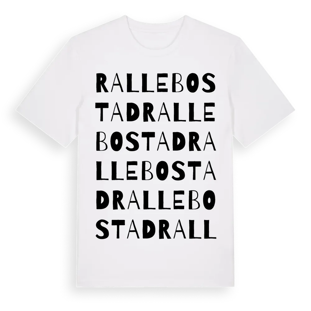 Rallebostad ordlek t-shirt är inspirerad av byn Rallebostad i Östergötlands län, Sverige. Tröjan är designad för dig som har en speciell koppling till platsen – oavsett om du bor här, har rötterna här eller bara älskar Rallebostad.