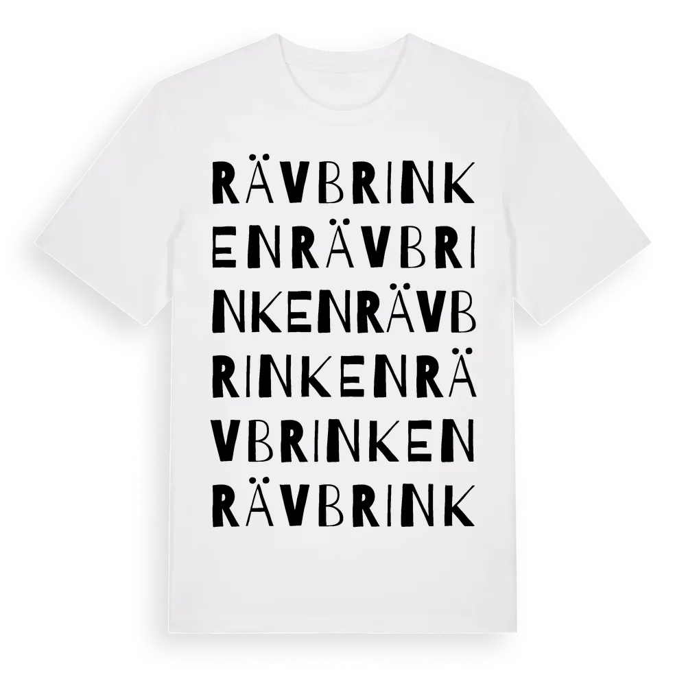 Rävbrinken ordlek t-shirt är inspirerad av Rävbrinken i Östergötlands län, Sverige. Tröjan är designad för dig som har en speciell koppling till platsen – oavsett om du bor här, har rötterna här eller bara älskar Rävbrinken.
