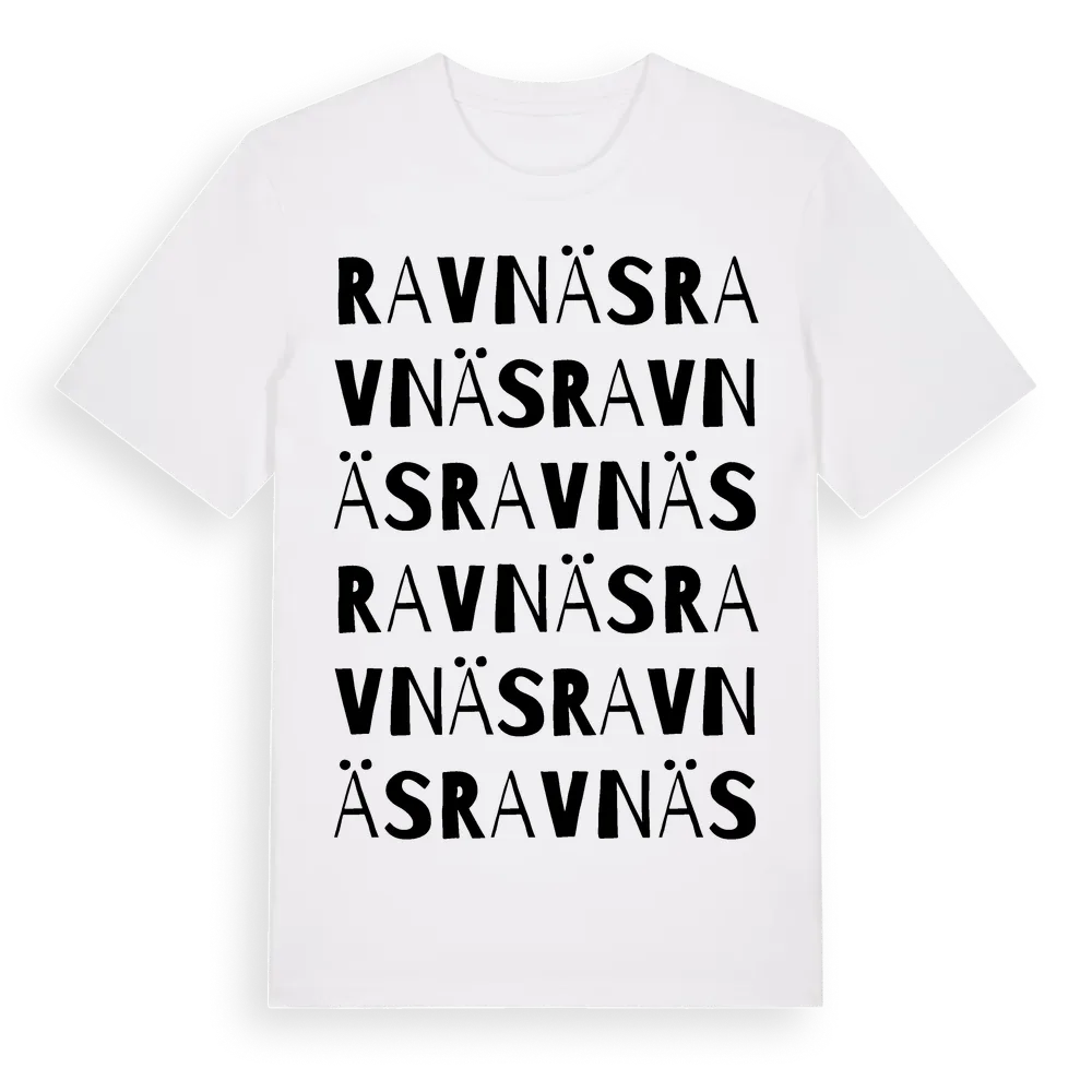 Ravnäs ordlek t-shirt är inspirerad av Ravnäs i Östergötlands län, Sverige. Tröjan är designad för dig som har en speciell koppling till platsen – oavsett om du bor här, har rötterna här eller bara älskar Ravnäs.