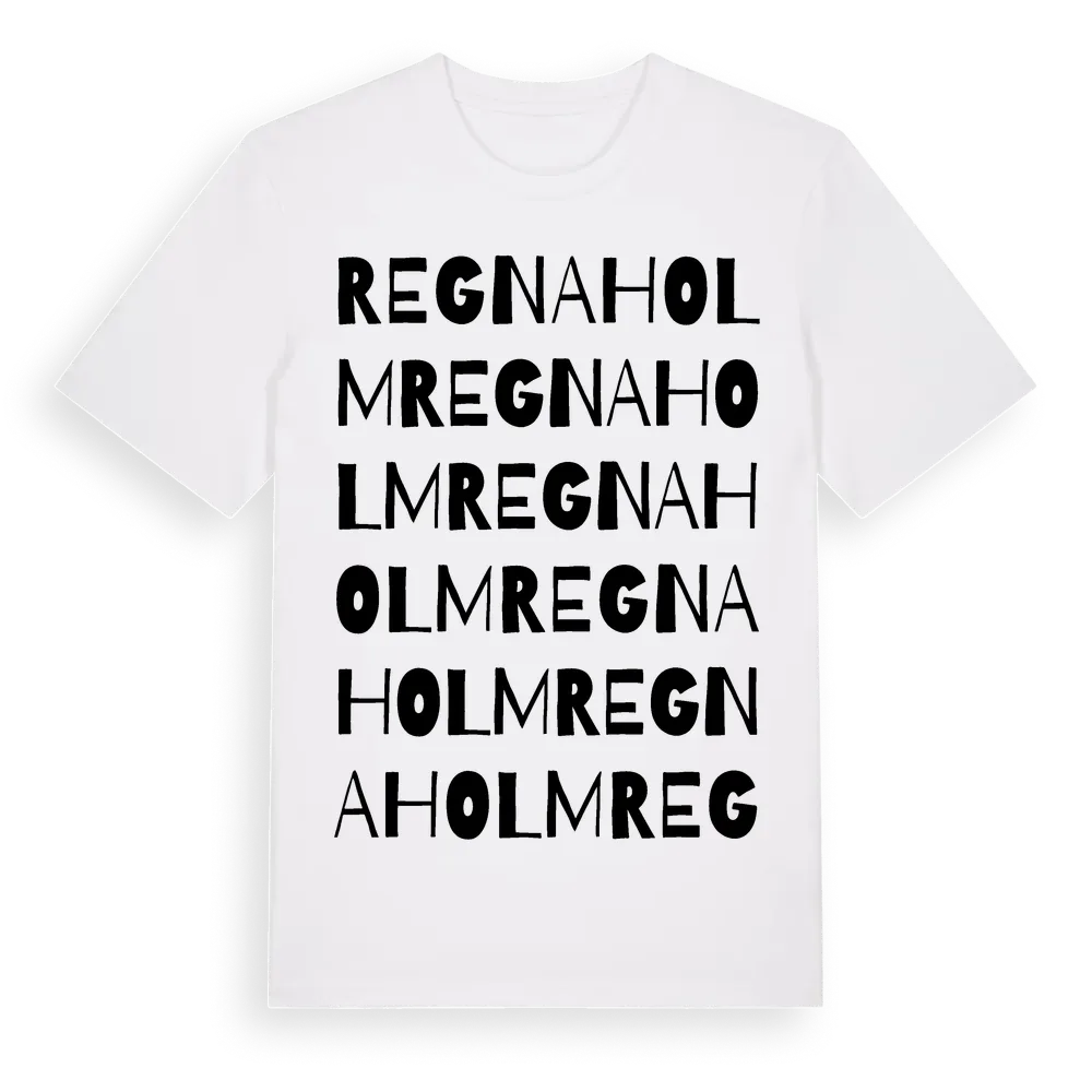 Regnaholm ordlek t-shirt är inspirerad av Regnaholm i Östergötlands län, Sverige. Tröjan är designad för dig som har en speciell koppling till platsen – oavsett om du bor här, har rötterna här eller bara älskar Regnaholm.