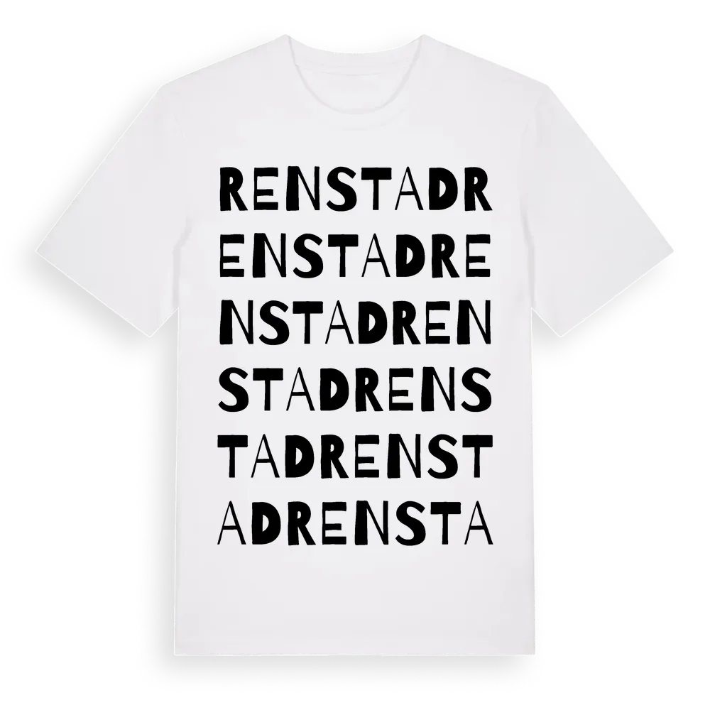 Renstad ordlek t-shirt är inspirerad av Renstad i Östergötlands län, Sverige. Tröjan är designad för dig som har en speciell koppling till platsen – oavsett om du bor här, har rötterna här eller bara älskar Renstad.