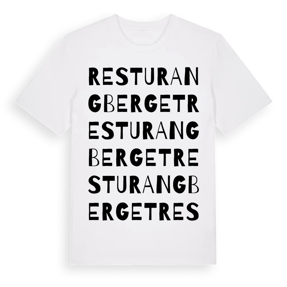 Resturangberget ordlek t-shirt är inspirerad av Resturangberget i Östergötlands län, Sverige. Tröjan är designad för dig som har en speciell koppling till platsen – oavsett om du bor här, har rötterna här eller bara älskar Resturangberget.