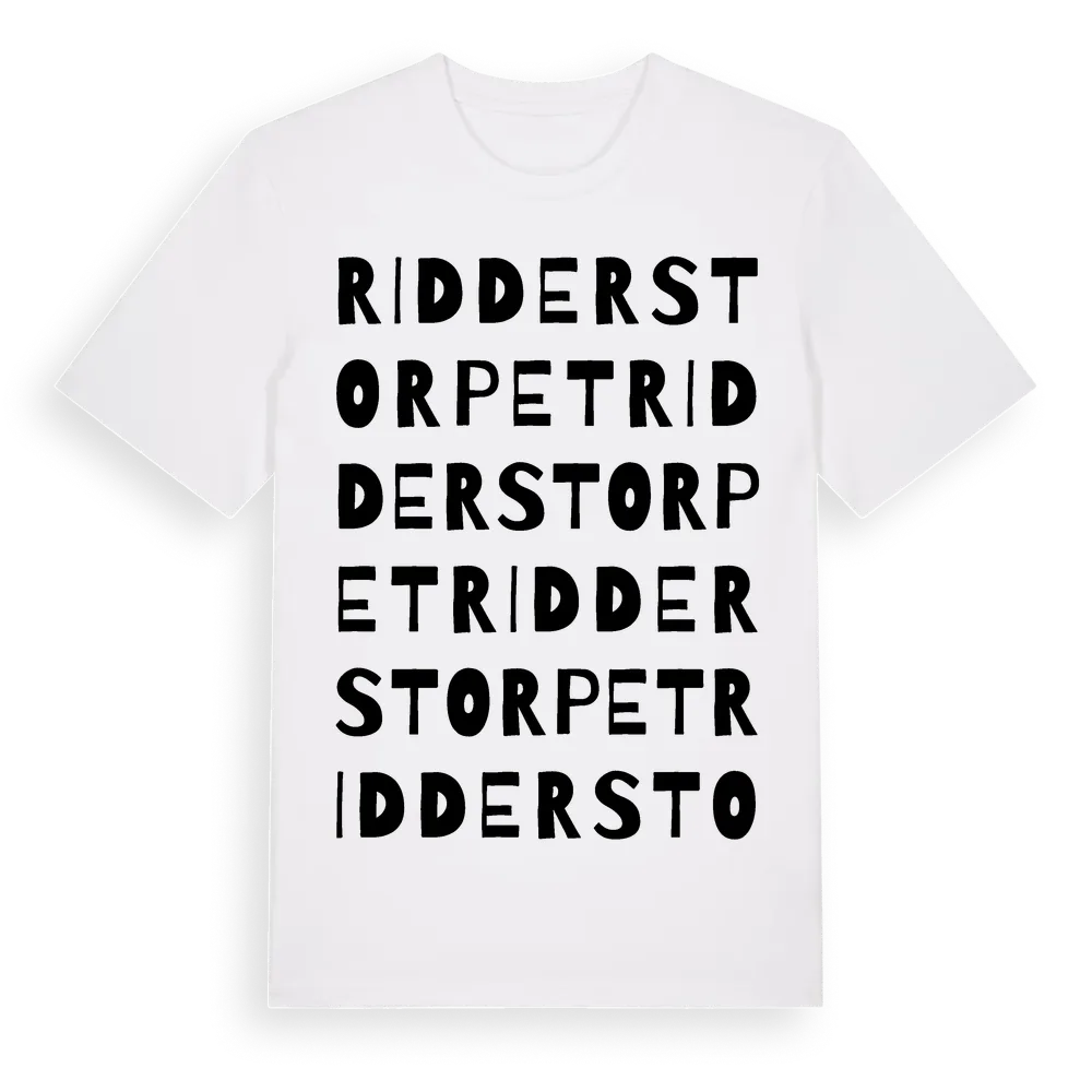 Ridderstorpet ordlek t-shirt är inspirerad av Ridderstorpet i Östergötlands län, Sverige. Tröjan är designad för dig som har en speciell koppling till platsen – oavsett om du bor här, har rötterna här eller bara älskar Ridderstorpet.