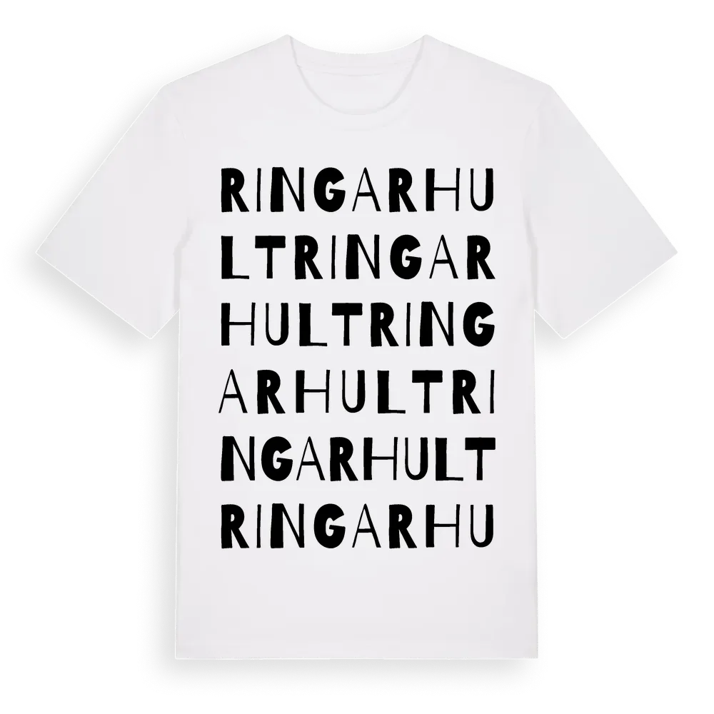 Ringarhult ordlek t-shirt är inspirerad av byn Ringarhult i Östergötlands län, Sverige. Tröjan är designad för dig som har en speciell koppling till platsen – oavsett om du bor här, har rötterna här eller bara älskar Ringarhult.