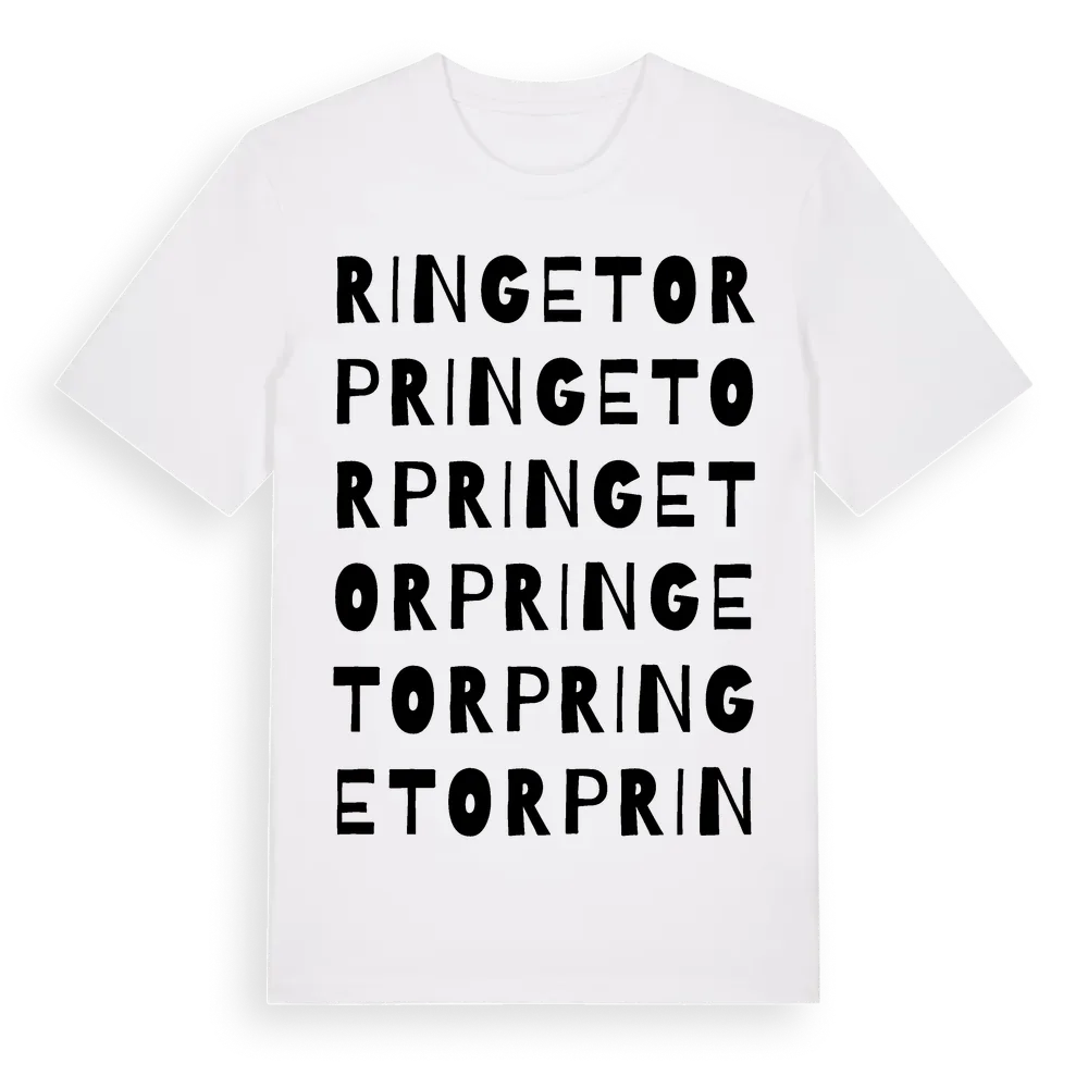 Ringetorp ordlek t-shirt är inspirerad av byn Ringetorp i Östergötlands län, Sverige. Tröjan är designad för dig som har en speciell koppling till platsen – oavsett om du bor här, har rötterna här eller bara älskar Ringetorp.