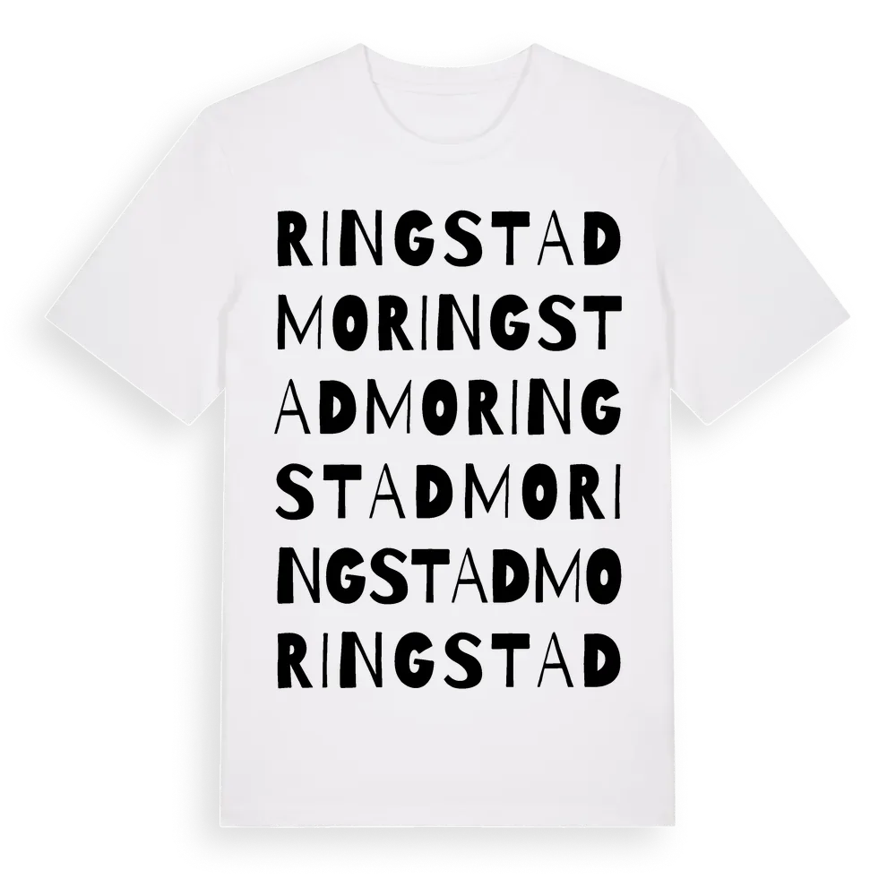 Ringstadmo ordlek t-shirt är inspirerad av Ringstadmo i Östergötlands län, Sverige. Tröjan är designad för dig som har en speciell koppling till platsen – oavsett om du bor här, har rötterna här eller bara älskar Ringstadmo.