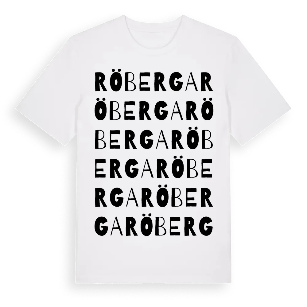 Röberga ordlek t-shirt är inspirerad av Röberga i Östergötlands län, Sverige. Tröjan är designad för dig som har en speciell koppling till platsen – oavsett om du bor här, har rötterna här eller bara älskar Röberga.