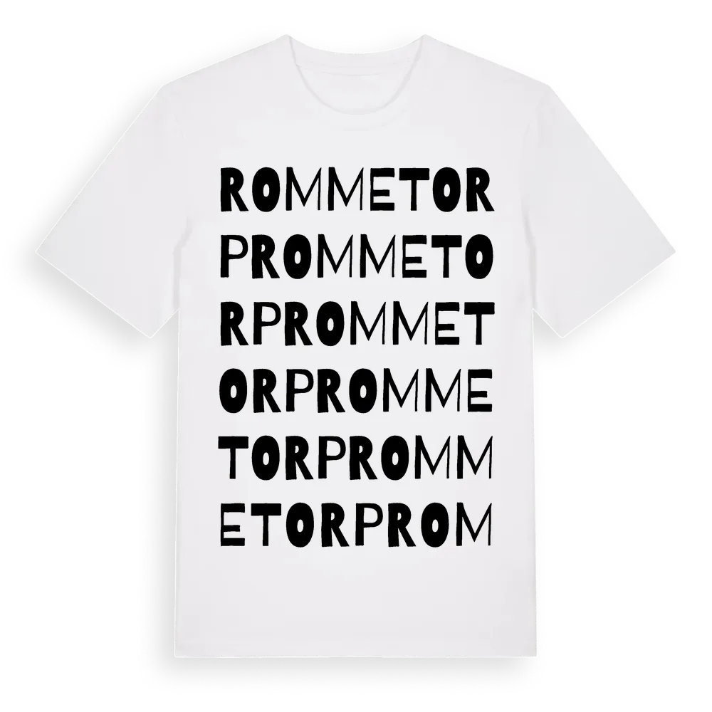 Rommetorp ordlek t-shirt är inspirerad av byn Rommetorp i Östergötlands län, Sverige. Tröjan är designad för dig som har en speciell koppling till platsen – oavsett om du bor här, har rötterna här eller bara älskar Rommetorp.