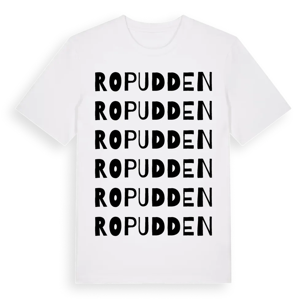 Ropudden ordlek t-shirt är inspirerad av Ropudden i Östergötlands län, Sverige. Tröjan är designad för dig som har en speciell koppling till platsen – oavsett om du bor här, har rötterna här eller bara älskar Ropudden.