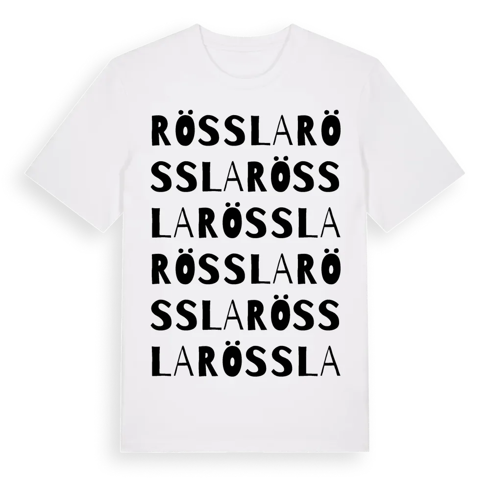 Rössla ordlek t-shirt är inspirerad av Rössla i Östergötlands län, Sverige. Tröjan är designad för dig som har en speciell koppling till platsen – oavsett om du bor här, har rötterna här eller bara älskar Rössla.