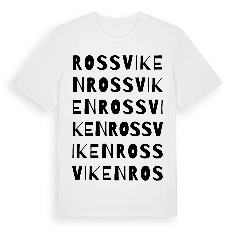 Rossviken ordlek t-shirt är inspirerad av Rossviken i Östergötlands län, Sverige. Tröjan är designad för dig som har en speciell koppling till platsen – oavsett om du bor här, har rötterna här eller bara älskar Rossviken.