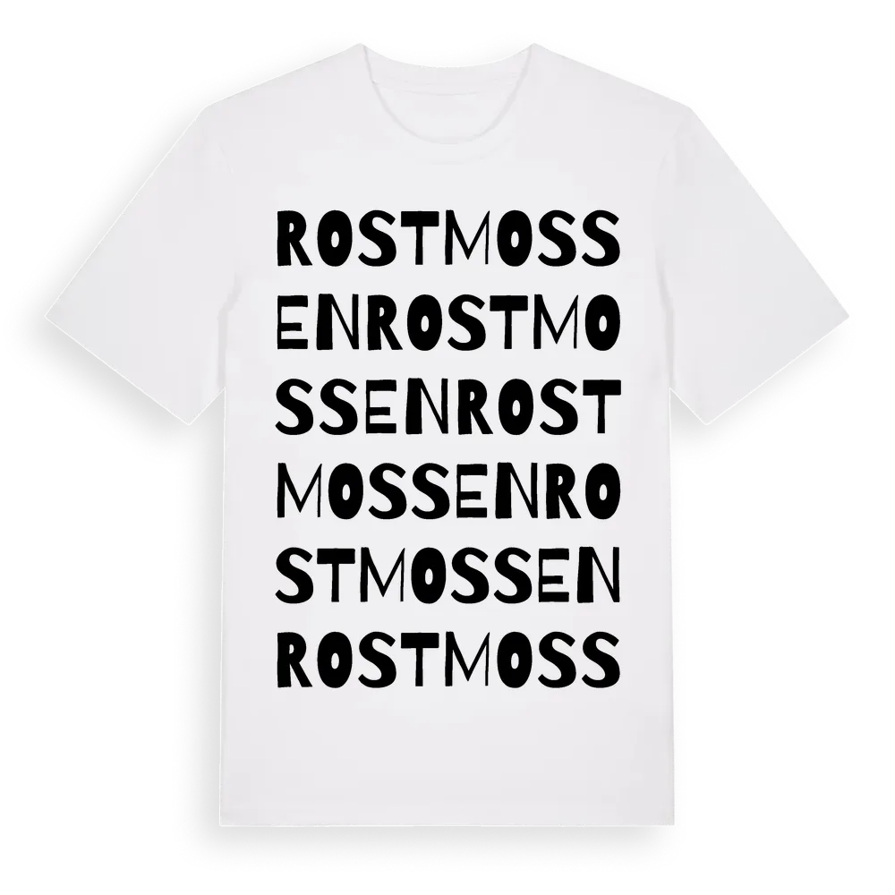 Rostmossen ordlek t-shirt är inspirerad av Rostmossen i Östergötlands län, Sverige. Tröjan är designad för dig som har en speciell koppling till platsen – oavsett om du bor här, har rötterna här eller bara älskar Rostmossen.
